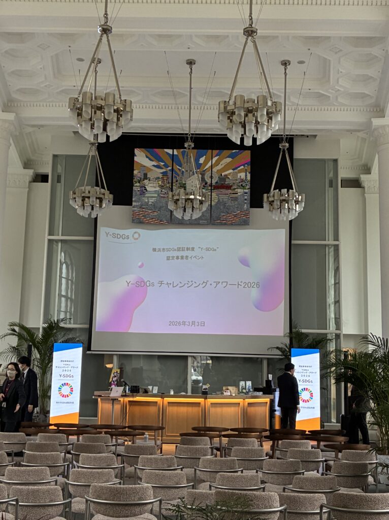 授賞式は屋内開催でしたが、来場者の動線確保や照明調整が難しい状況もあり、プロジェクターでは映像の明るさが不安定になる可能性がありました。